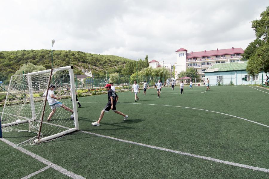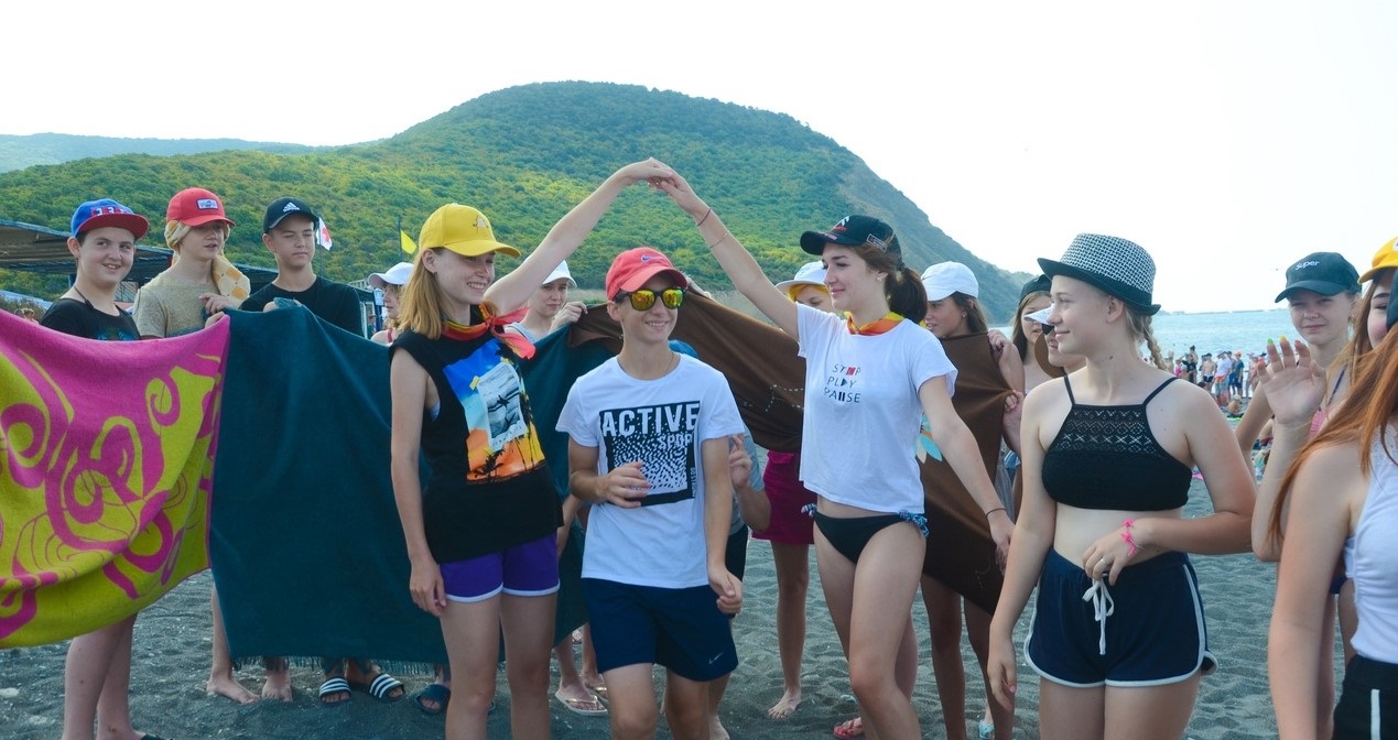 Мелкогалечный пляж расположился в 600 м от лагеря, в бухте между живописными склонами. Акватория купания выделена буйками.За беопасность детей отвечают медики, спасатели и вожатые.