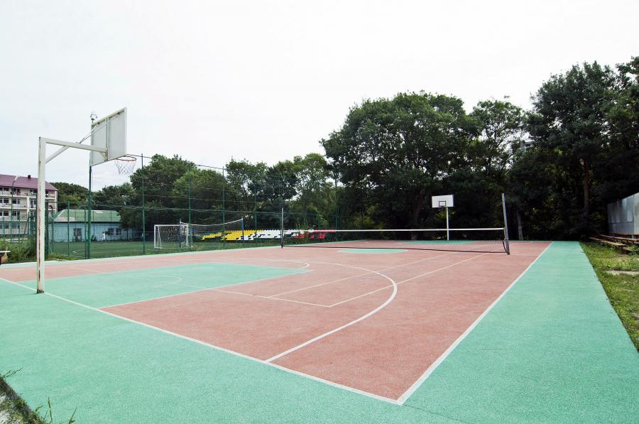 - 2 баскетбольные площадки (28 х 15м, тартановое покрытие);