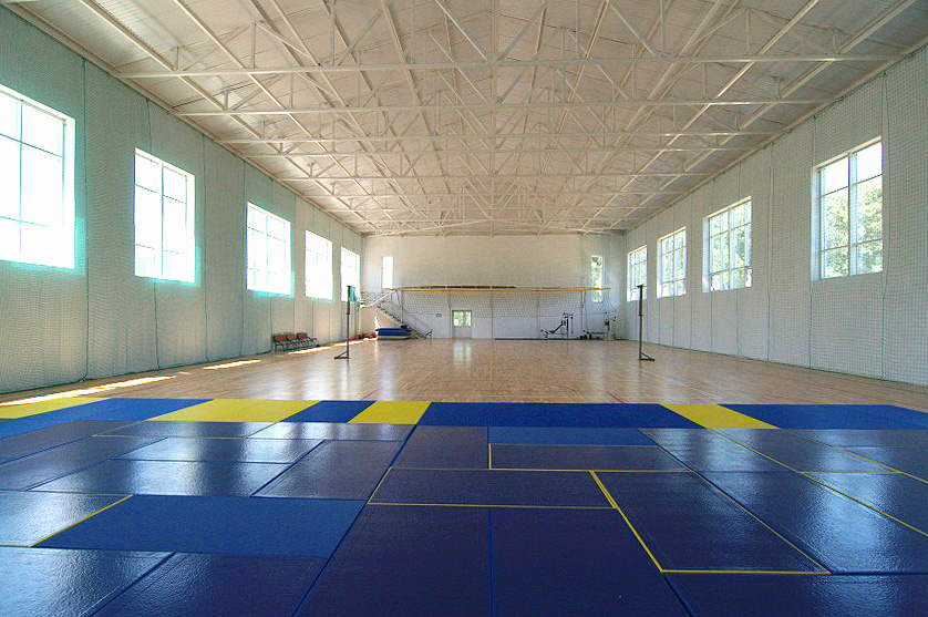 - универсальный крытый спортивный зал (36 х 18 м, высота 8 м, паркет): сборно-разборный ринг- 7 х7 м, ковры для гимнастики, татами;