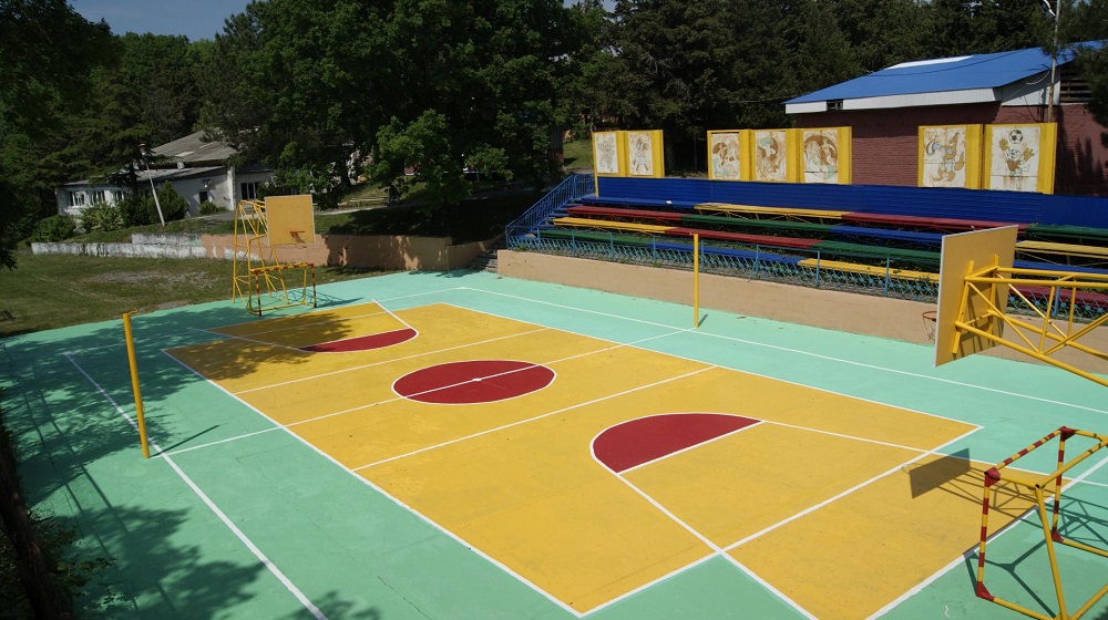 - поле для занятия мини-футболом, волейболом, баскетболом ( 540 м²), искусственное покрытие;