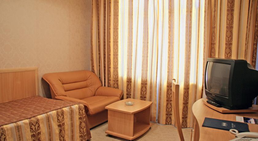 Большой выбор номеров как для одного человека, так и для семей и организованных групп, интернет, ресторан, парикмахерская, автостоянка, конференц залы