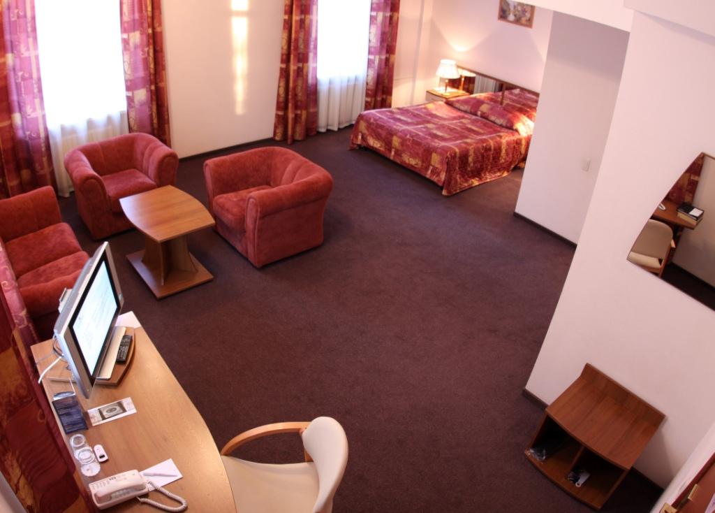 Maxima Irbis hotel offers 96 rooms: from differently furnished Standard rooms to luxurious, perfectly designed Suites. Each Suite is decorated in certain style: «Orange», «Pistachio», «Modern», «Classic». In each room you will find all you need for comfortable staying: sufficient furniture, bathroom, TV, telephone, mini bar, air-conditioning. All Suites are equipped with Jacuzzi where you can pamper yourself while watching TV or having a glass of bubbly champagne which you can order from our room service.