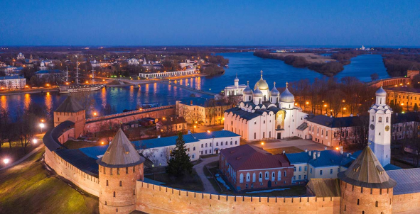 Обзорная  экскурсия по городу с посещением достопримечательностей Великого Новгорода и его окрестностей: Ярославово дворище, древний торг - в настоящее время это одно из самых красивых мест Новгорода. Свято-Юрьев мужской монастырь (ХII в.) - главный храм монастыря Георгиевский собор (1119 г.), в соборе можно увидеть фрагменты фресковой живописи ХII в. (посещение). Музей деревянного зодчества (посещение) - знакомство с бытом русской деревни XVI-XVIII вв. Во время автобусной экскурсии вы восхититесь совершенством форм церковь Спаса Преображения на Ильине (1374 г.), увидите Знаменский собор, (1682-1688 гг.) и совершите путешествие по Неревскому концу Великого Новгорода: увидите церковь Петра и Павла в Кожевниках (1406 г.), ансамбль бывшего Зверина монастыря с жемчужиной в центре -церковь Симеона (продолжительность 3 часа).