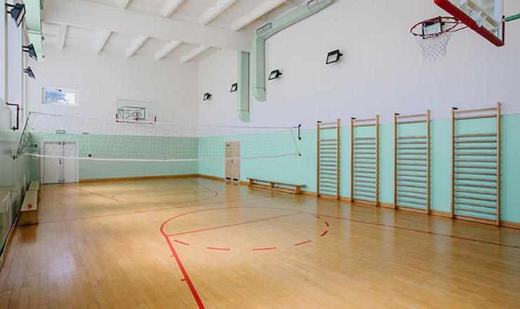 - крытый спортивный зал (17,8 х 8,5 м; высота - 8 м; деревянный паркет);
