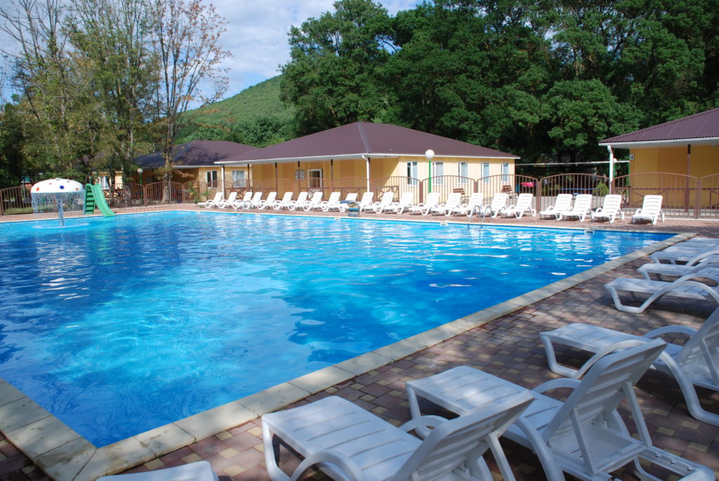 - открытый бассейн с водными горками (25 х 15 м) глубина 0,5;