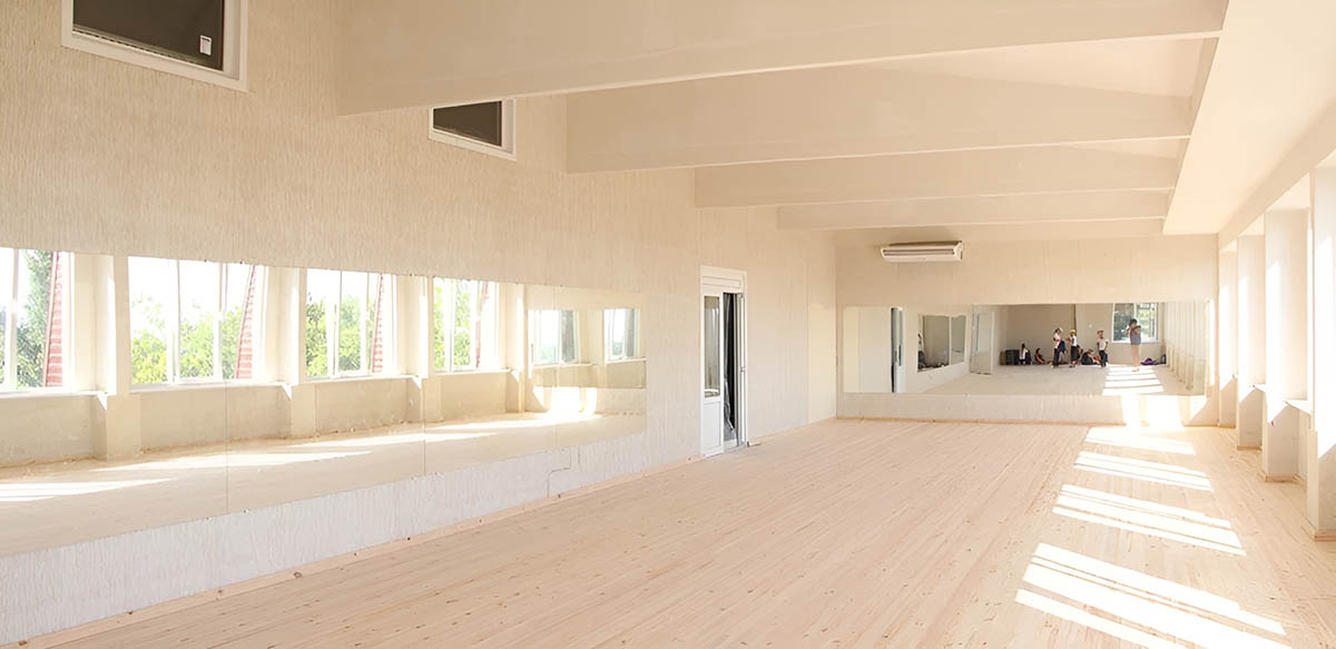 - зал гимнастический (25 х 6,5 м), оборудован зеркалами, пол - шлифованный брус (167 кв.м.);