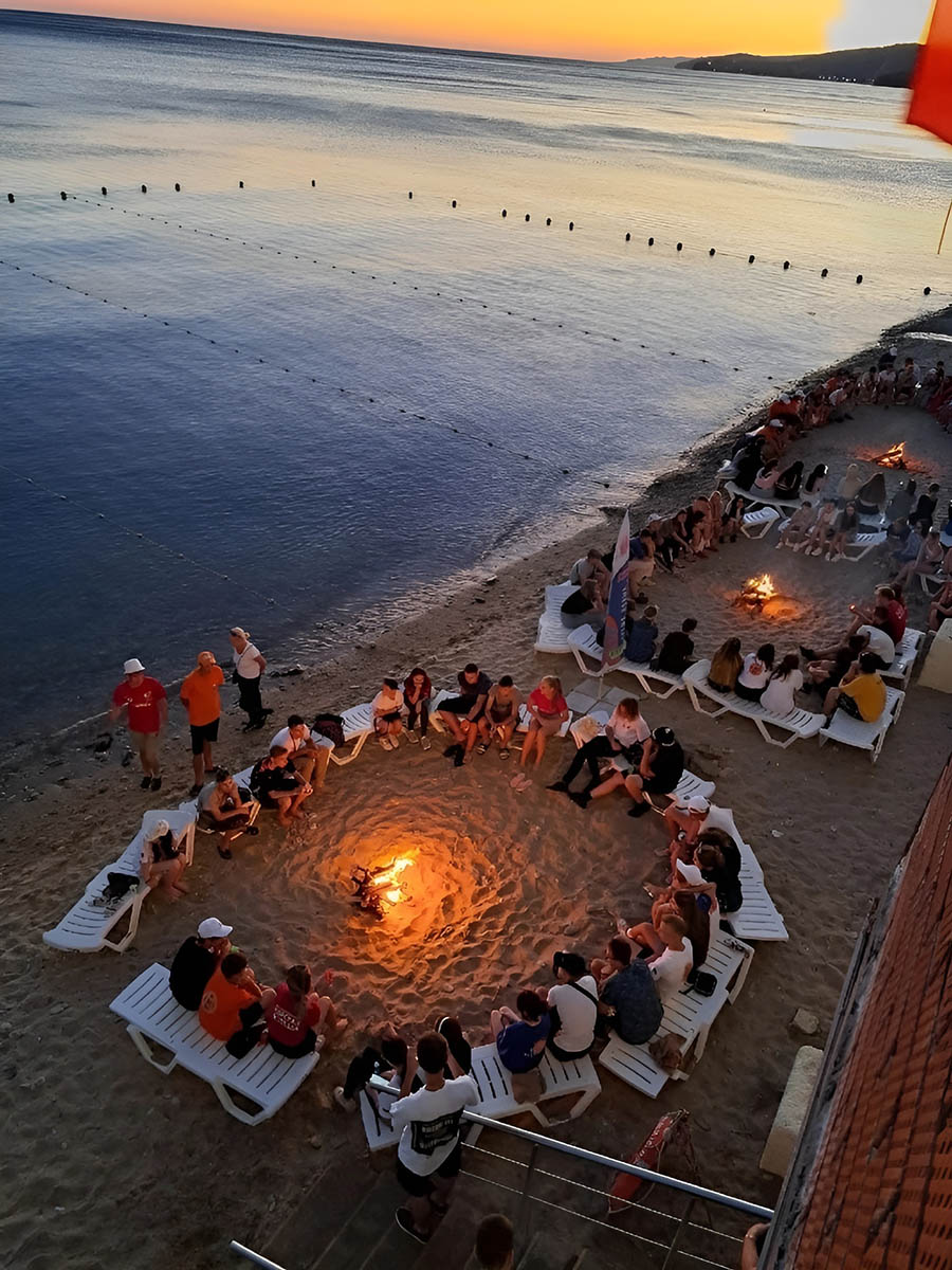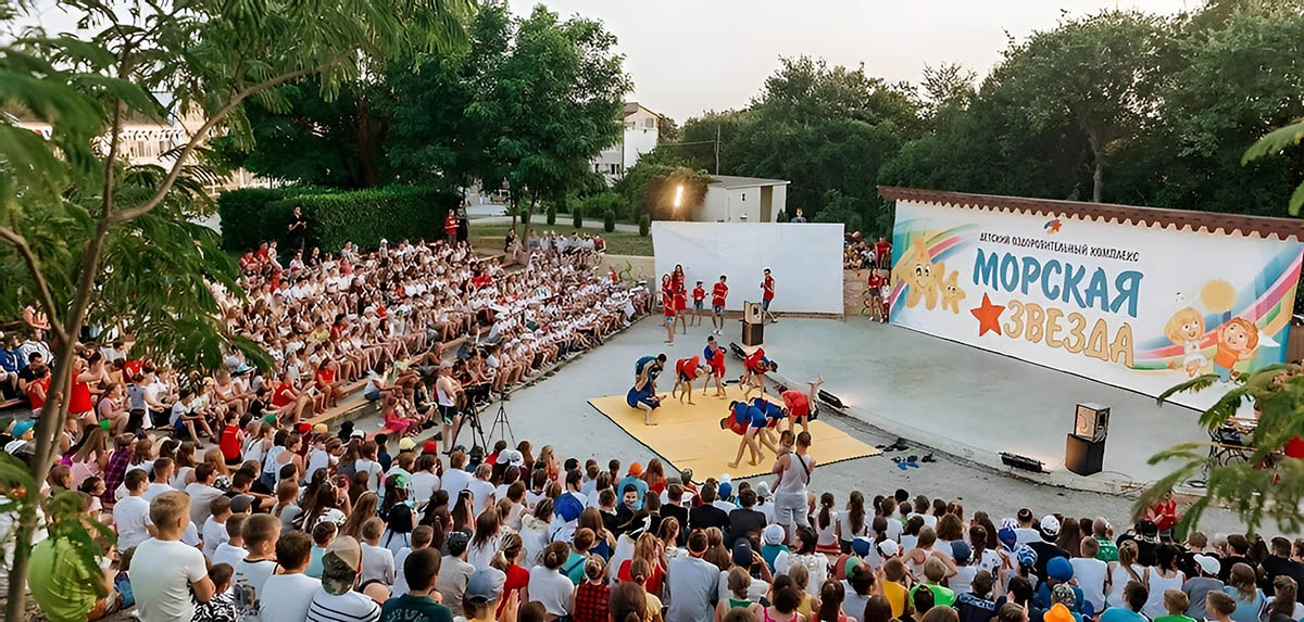 Сердце лагеря - это масштабный открытый амфитеатр площадью 2500 кв.м. и столь же масштабная гостевая площадь.