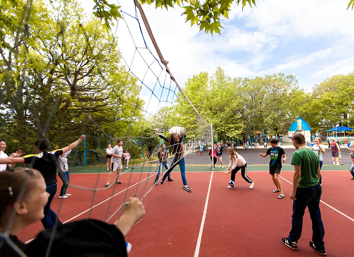 - волейбольное поле (16 х 7 м) с мягким резиновым покрытием (112 кв.м.);