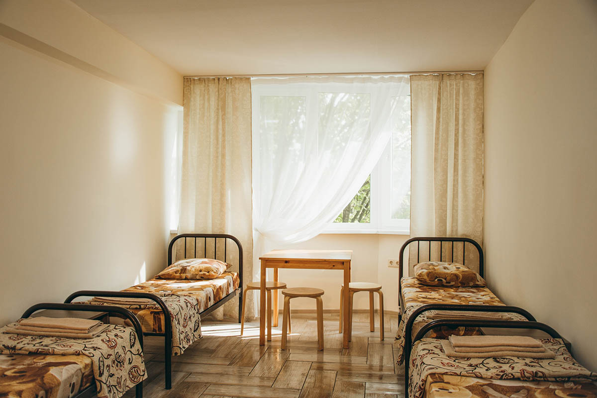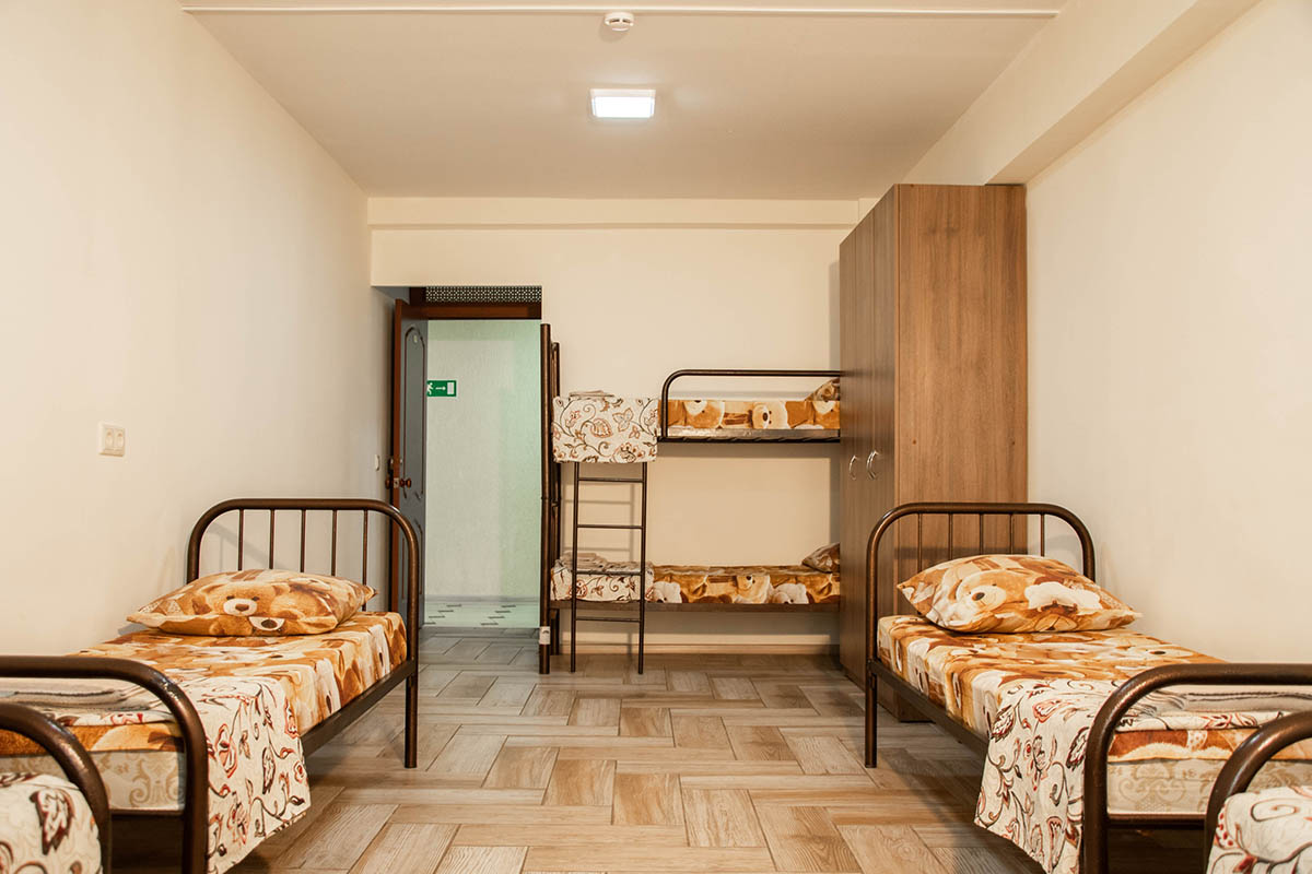 6 местные номера с удобствами в номере (душ, туалет, раковина). В каждом номере: кровати с ортопедическими матрасами, прикроватные тумбочки, стол, стулья, шкаф для одежды, обувница. В спальных корпусах имеются стиральные машины - автомат для стирки детских вещей, отдельные помещения для стирки и глажки белья, сушилки для одежды.