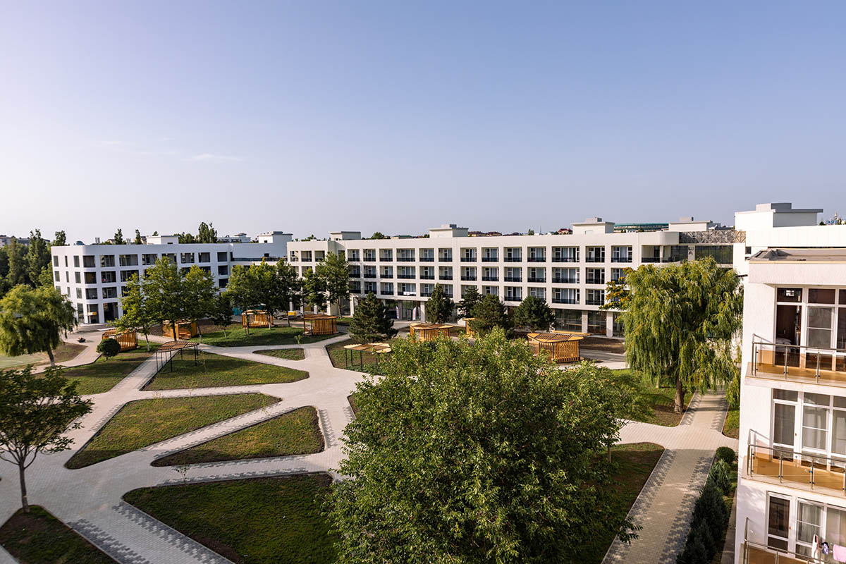 Корпус «Аврора» - это три современные здания, вокруг которых сосредоточены все спортивные объекты, включая открытый бассейн (25 м). Общая вместительность 530 человек.
