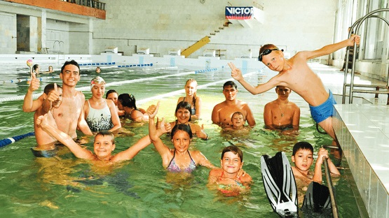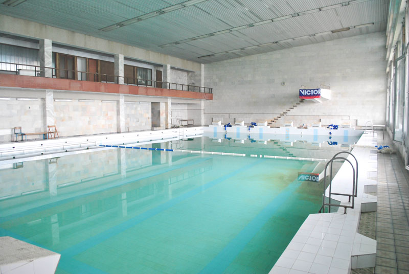 - крытый бассейн с морской подогреваемой водой, размер 25 м х 12 м, 6 дорожек по 2,35 м. Глубина малой чаши 1,3 м, глубокой чаши - 4,5 м