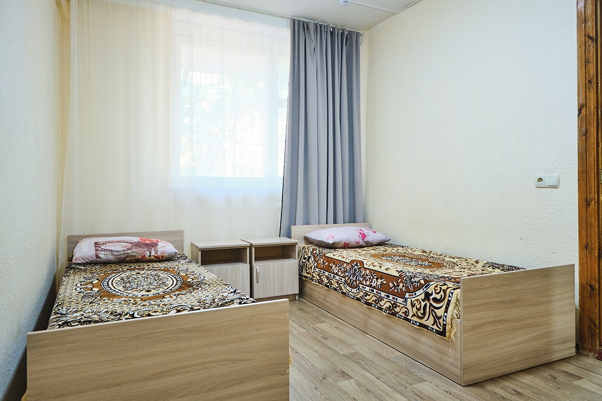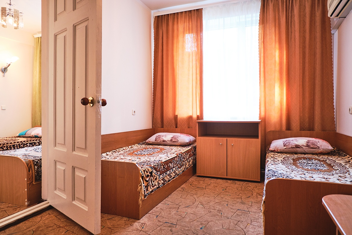 - Эконом 1-8 местные номера с удобствами на этаже. В каждом номере 2 смежные комнаты с общим выходом на балкон.
