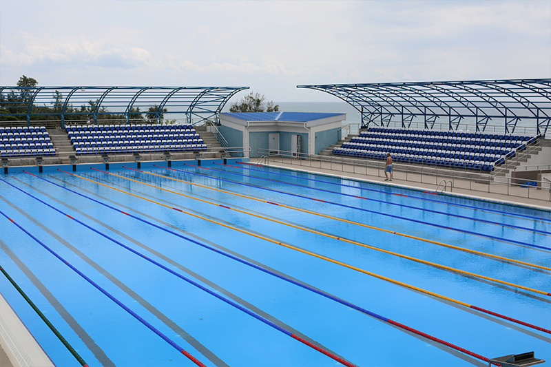 - открытый олимпийский бассейн «олимпийский» 50х25 (глубина 1,6-2,35; 10 дорожек, стартовые тумбы)
